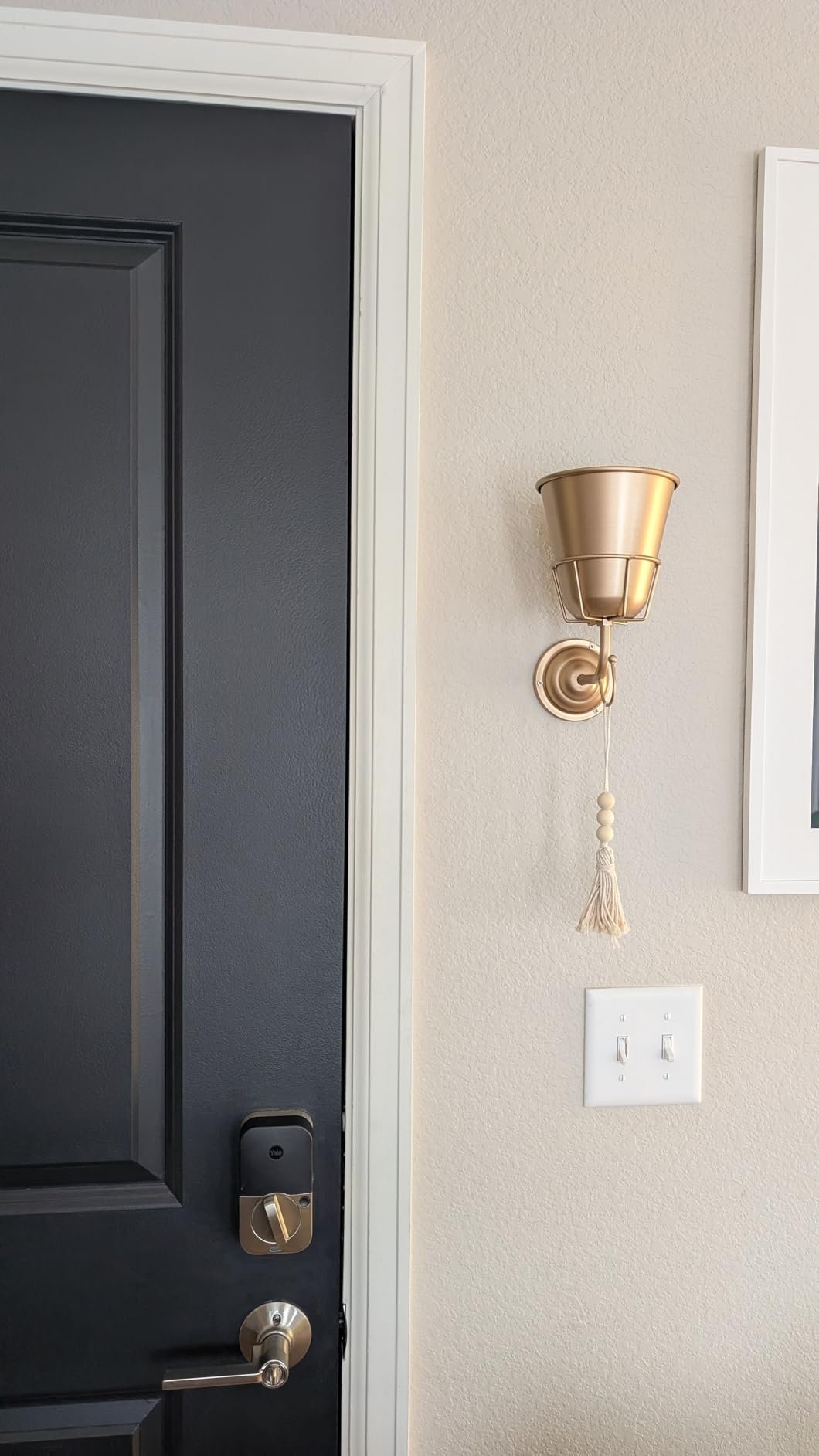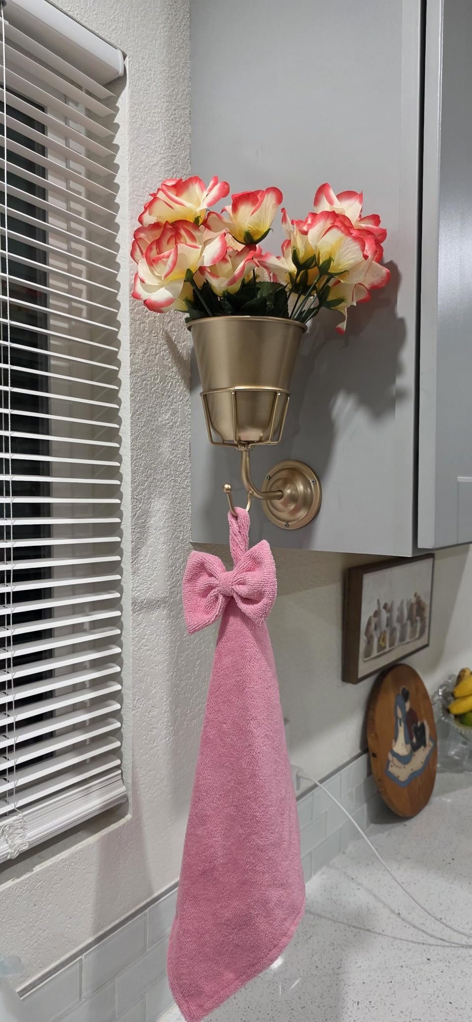 “Easy to install on your wall or cabinet, holds real or faux flowers for a touch of color where you might not have one, great value for the money, and of course the gold color is simply perfect. Not too big and not too small, but just right!”